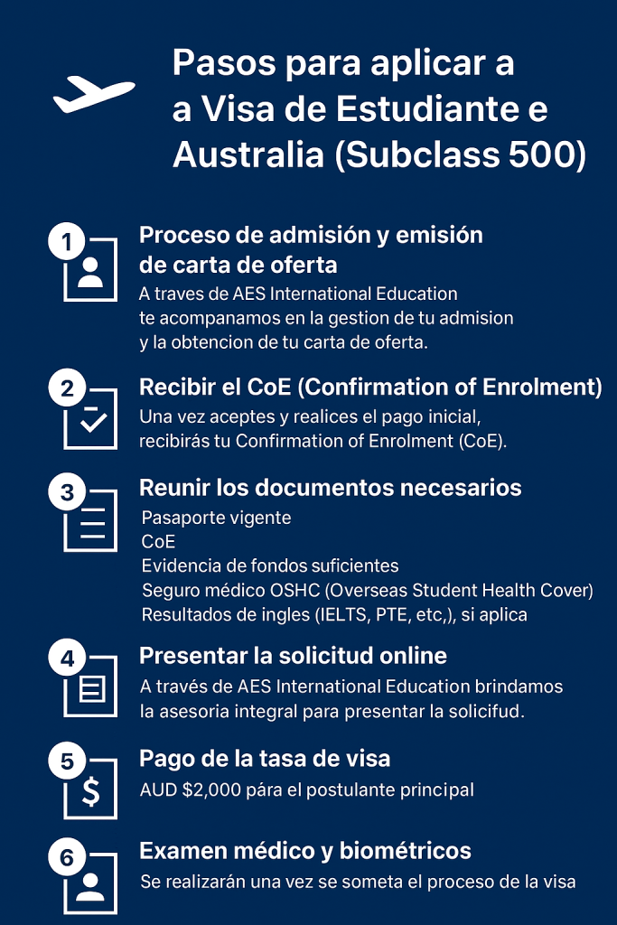 Tu visa, nuestro compromiso. En AES International Education te ofrecemos asesoría profesional y confiable para tramitar tu visa a Australia. Te acompañamos en cada paso para que tu experiencia sea segura, ágil y sin complicaciones.